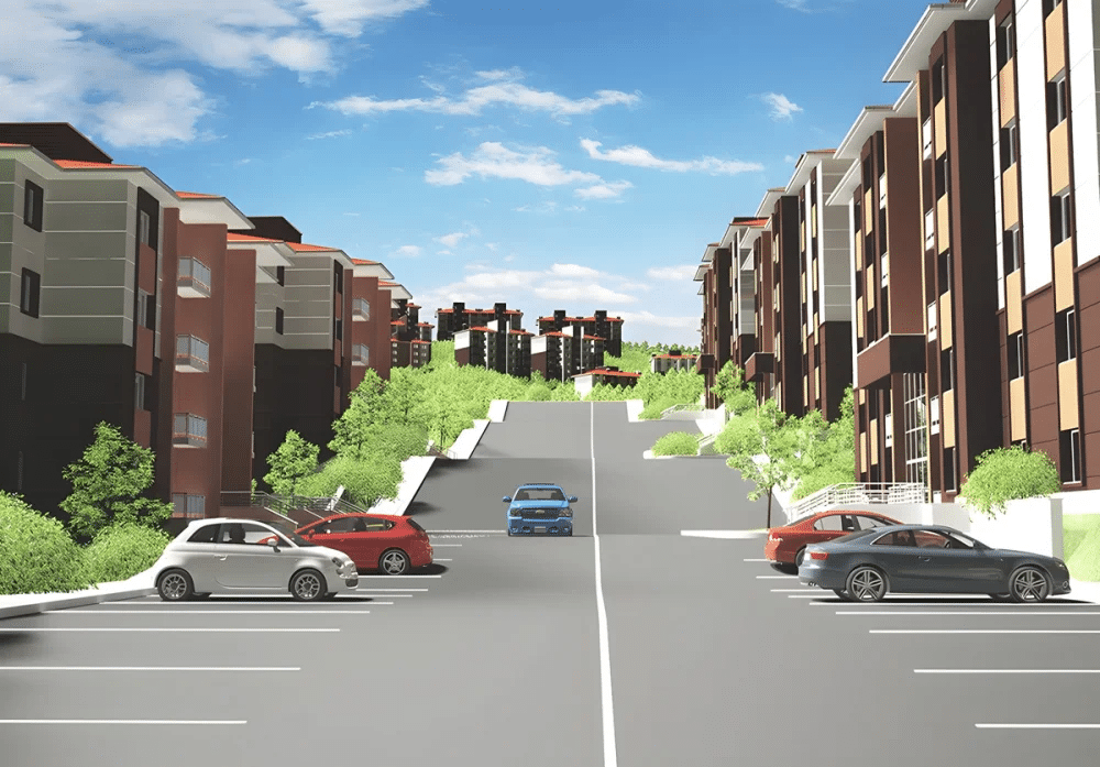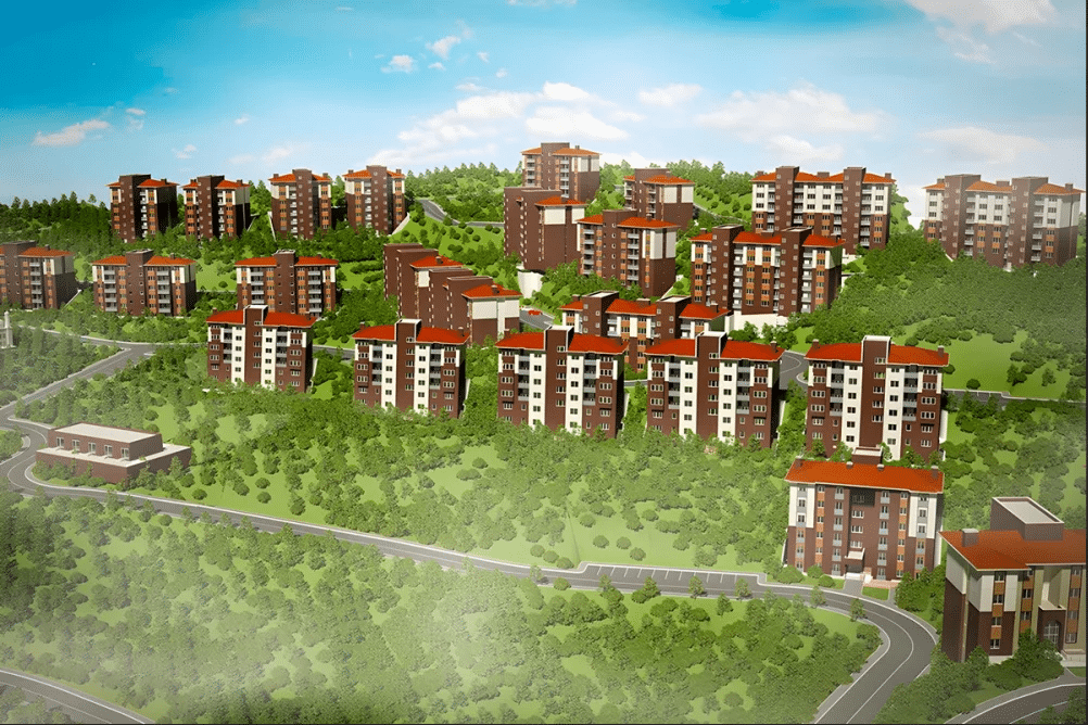 Proje Kapsamı : 766 Adet Konut, 1 Adet Cami ve 4 Adet Ticaret Merkezi İnşaatları ile Altyapı ve Çevre Düzenlemesi İşi